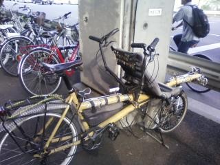 Look what we found at Yoyogi Park! All locked up, sitting by itself, a Hase Pino that looks to have done some serious miles! Awesome! We took a close inspection at the running gear and made some comparisons to the shiny new brute we have on order. This bike is a serious veteran. It even has mudguards made from PET bottles, we like their style!