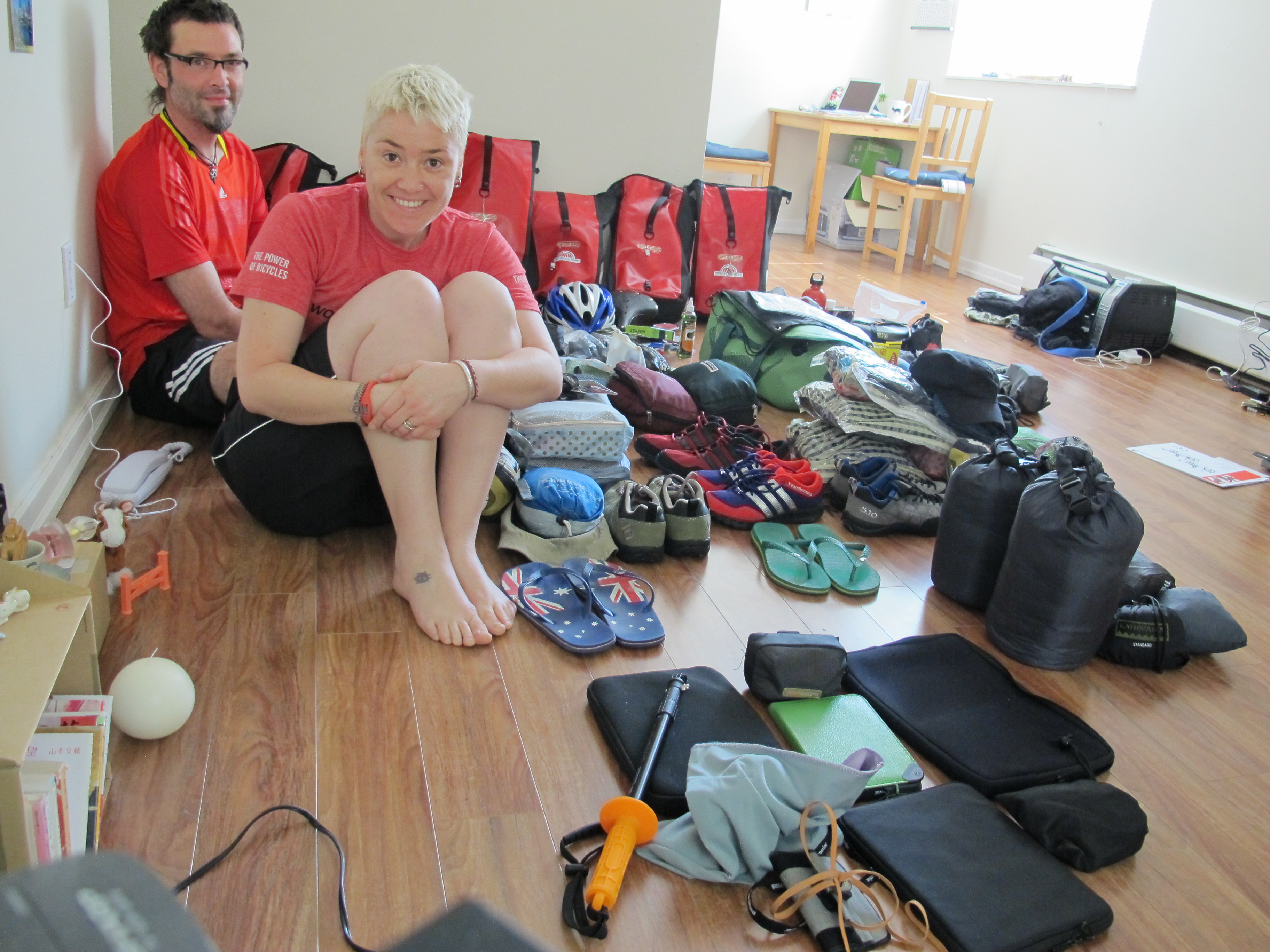 By Emma: What a TotallyHectic few days it has been! Arriving in Van on Monday, we have not stopped gathering! We have almost all of our gear now, with just a few small extra bits to locate along the way, and have found a place for everything in the panniers. What a mission! We have spent the last 2 days test riding the beast and are seriously loving ourselves sick. She is such a sweet sweet ride! I have sore cheeks from constant smiling and can’t imagine ever not loving this gig. Although when I relayed that sentiment to Bren, he suggested I may not feel the same cycling uphill into a head wind in the rain. Hmm……