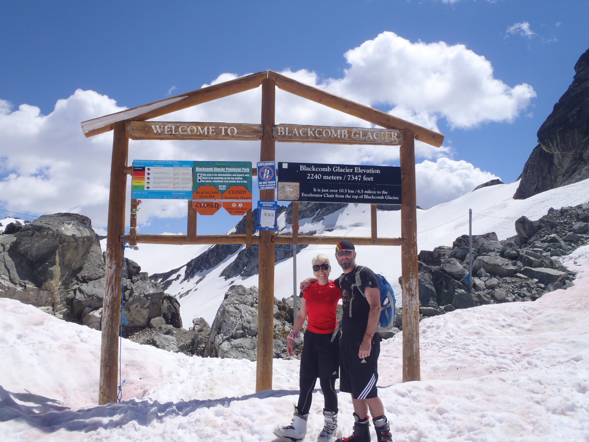 On Saturday morning, our Aussie mate Bec (who lives in Banff) and her dog Mac the boxer, met us in Squamish and we headed up to Whistler together to share the tail end of her summer vacation camping by the river. It is super hot here, and we spent our first afternoon soaking up the cool clear waters of Lost Lake. It rained all day Sunday but the sun came out again yesterday and we couldn’t resist the opportunity to slip in a sneaky spring skiing session, so headed up Blackcomb for some nice slushy runs. Got a little bit sunburnt but that is to be expected when skiing in 30degrees temps. Good times!