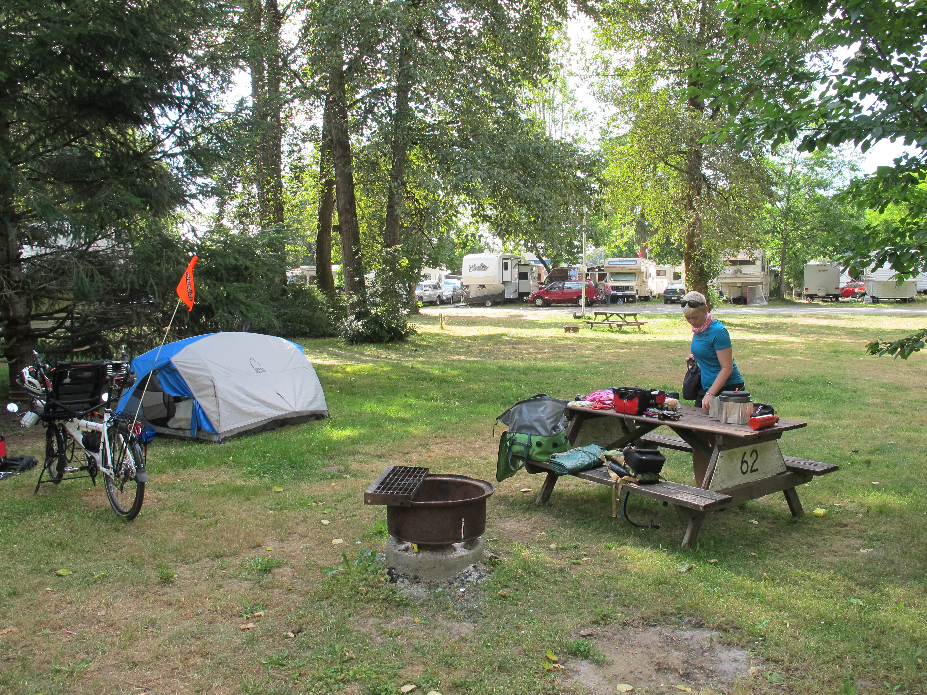 Arriving in Nanaimo after a 1hr45 ferry ride, we are refreshed and ready to find our campsite that we believe is only 4 km out-of-town. ‘Should be around 10km max’ Bren says. And so it is, remarkably, and without too much fuss (well, the chain came off twice) we do indeed find ‘Living Forest Ocean View Campground’. You know the drill; Tent, gear, dinner, dishes, laundry & showers then bed….at 8:30pm.