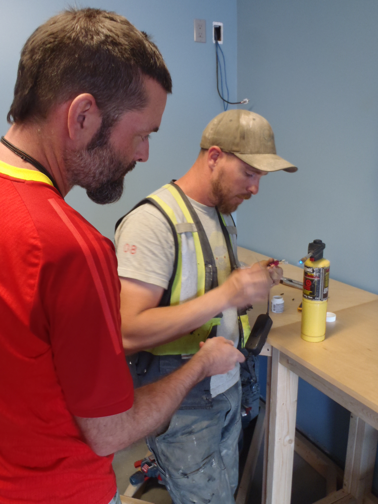 Clyde in his castle soldering our SIC cable (it allows us to  charge all of our USB devices from our wheel hub)