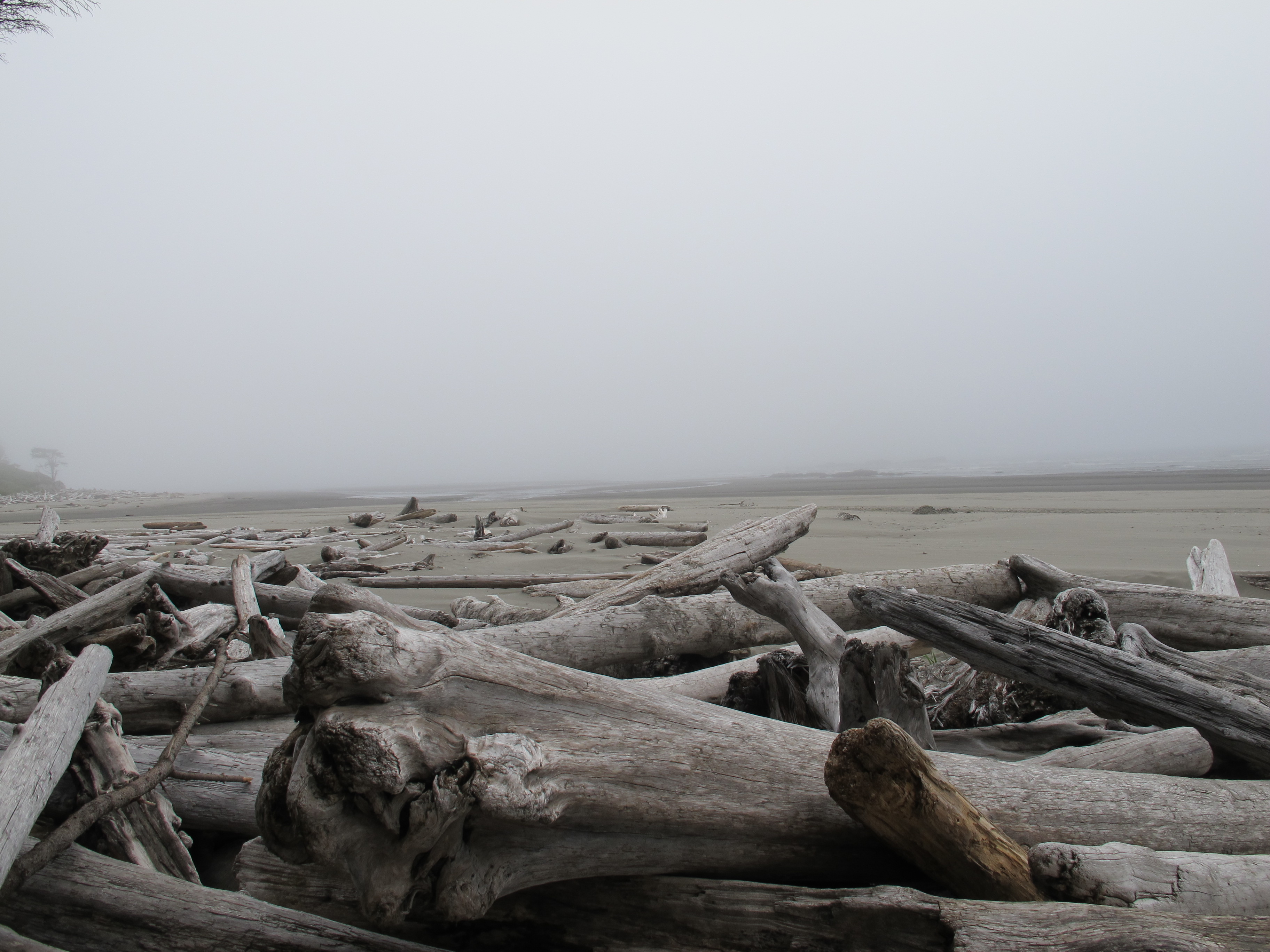 The sun has been shining on us mostly, but we hit some crazy cold fog when reaching the ocean at Kalaloch on the Olympic Peninsula. We had to empty our panniers and don every piece of clothing we had. Not quite the beach holiday we were expecting! No swimming for Bremma, mind you, with the hundreds of old logs washed up on the beach, I don’t think it would take much to meet one out in the surf and get a good whack to the head. So perhaps we should be grateful for the cold snap.