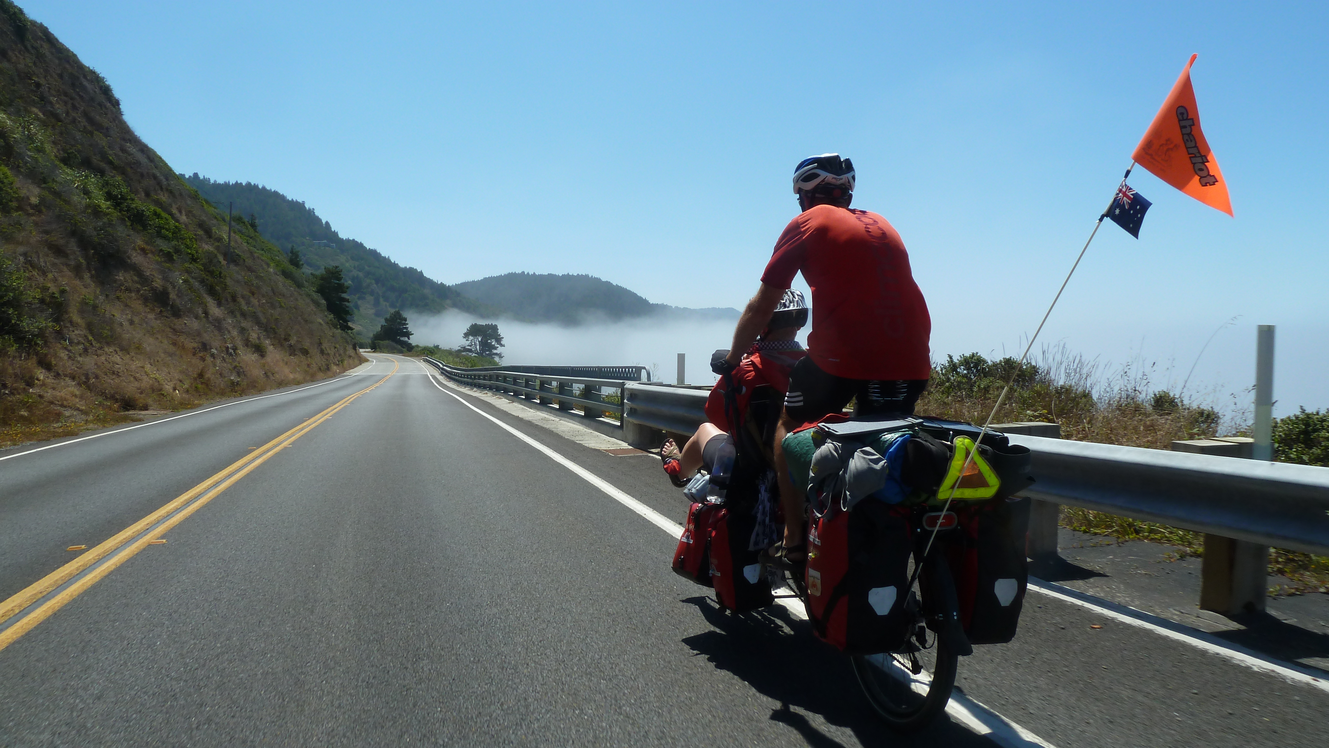 We both secretly thought that by simply crossing the state border into California, the beach babes & tans would surely mean and end to this eternal fog, but no. And so the dirty clothes dilemma. Well, washing them is easy with our new beaut portable washing machine called “The Scrubba” (it really is called that* see below), but how to dry them in this eternal fog? If we leave them out over night, the morning mist ensures they are as soaked as if they had been left out in the rain. So there was really only one option left to try, hanging them strategically on the bike and letting the wind of our pedal powered journey dry the washing. This of course only works if there is not any moisture in the air, and we have often sported the unpleasant odor of ‘not quite dry’ laundry on several occasions. There are other risks too of course, and since loosing a favored Adidas sports top on the ride somewhere between Lake Quinalt and Iwaco, I have taken to securing ‘riding washing’ much more fastidiously. Needless to say that when we come across a campsite that has a washer &dryer, we get excited like someone was giving out free cake.