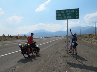 The alarm went off at 7am and the mission was on; pack up all of our stuff & prepare ready to ride 55km to the halfway point at Incline Village. Ideally, we would have liked to hit the road early and get some kms under our belts before lunch time and the heat of the day, alas, the only place in Reno that would rent a bike opened at 10am. But it’s only a 55km day so we should make it to our hotel in Incline Village before dark, even if we leave around midday.