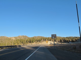 Jumping back onto Falkor, we just turned our legs over and begged to see the top. Finally, we saw the sign signifying the pass. I started crying with the emotional exertion of it all. Mick had beaten us to the top by a few mintues, but even he was unable to operate his camera properly to capture the moment. We made the summit around 6:50pm, after riding for nearly 7 hours. We met a random guy up there who took some snap shots for us, but we couldn’t take long. It was getting colder and darker, and we still had around 23km to reach Incline Village.