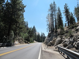 Brother riding on the Mount Rose Hwy. Those mountains we are heading toward are the ones we have to climb