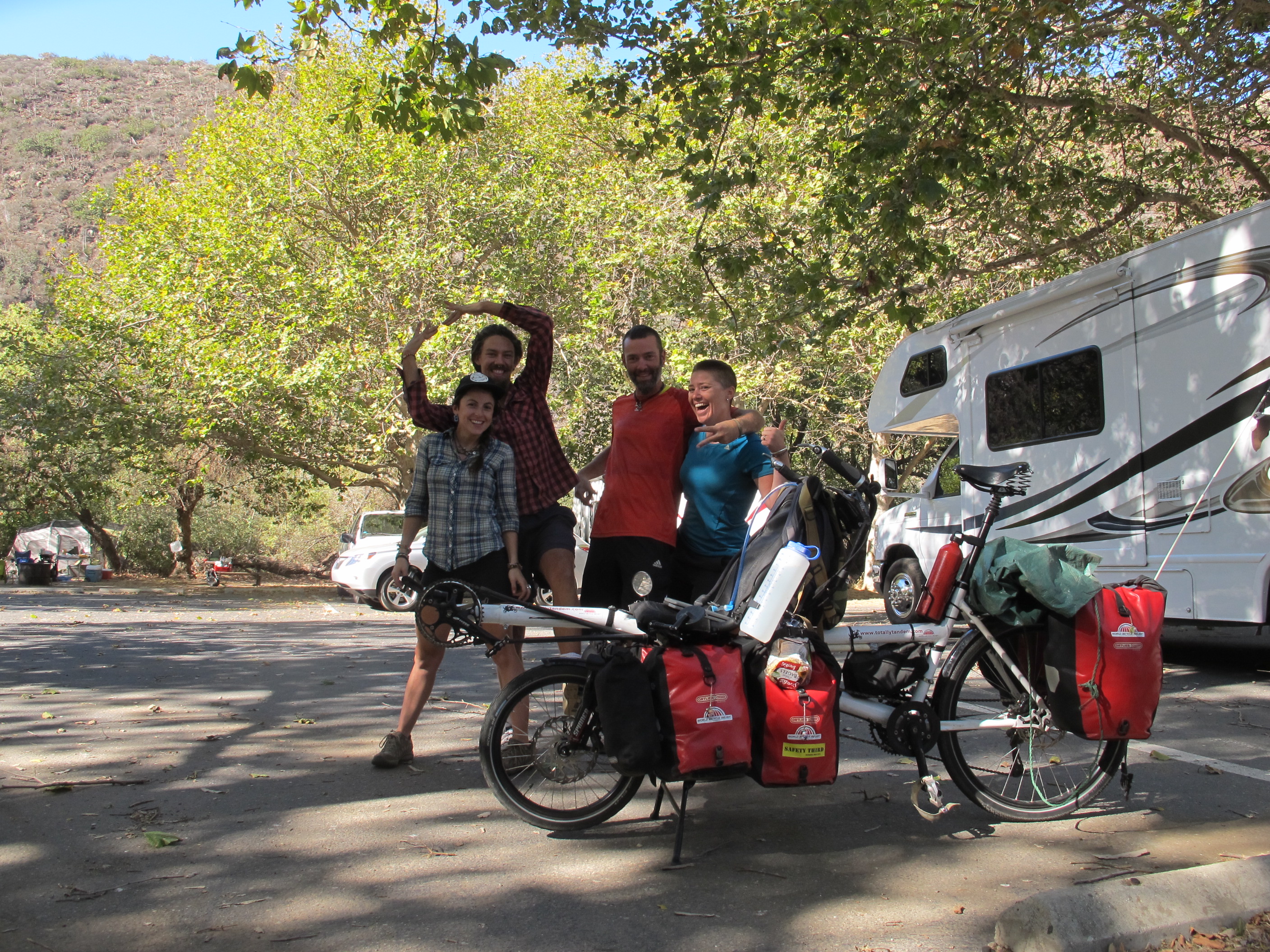 Utterly exhausted & quite exfoliated, we arrive at camp in the darkness. It was a very long day, spending 6 hours on the bike riding 85km with an average speed of 10kmph. We share a site with our new-found friends and they cook us dinner as we discuss the horrors of the Santa Ana winds and the treachery of this cycling day.