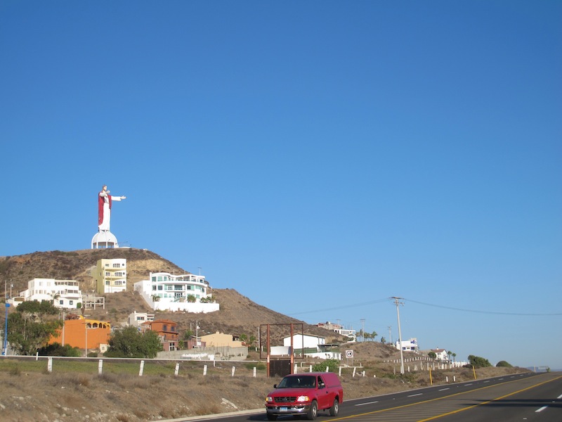 Like all good apparitions, Jesus appears over the top of a mountain and we finally arrive at Roberto’s family taco stand.