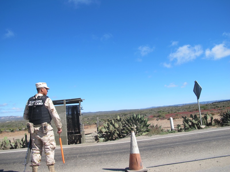 There are military check points all throughout the Baja. They look intimidating with their huge machine guns, but they always simply wave us through with huge smiles.
