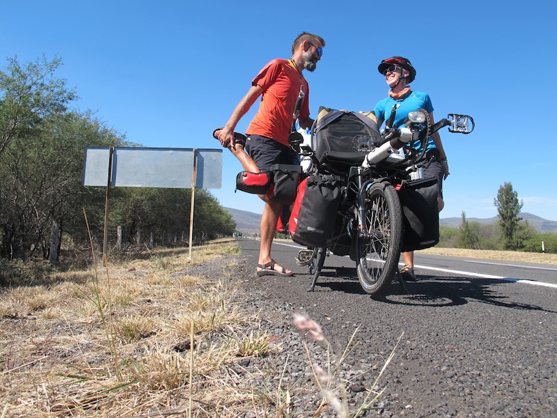 But, finally getting back on the road and back to our TotallyTandem journey was a wonderful feeling. We rode away feeling confident and operational on Falkor #2, our shiny new stead, fully intact and without cracks. Some small modifications making us feel much better about the upcoming kilometers. Riding through Guadalajara city was intense even at 7am. The traffic was chaos and the smog unbelievable.