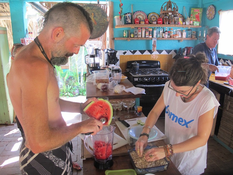 Our Aussie mates that we met on the Baja, Ken & Wendy, arrived the next day with their Mexican friend, as did Brenna & Joe, our Aussie cycling buddies. Everything was set for an awesome Christmas. There was much catching up to be done, in between all the relaxing, and in-between all of that, a plan was set for a Christmas feast! Everyone got involved in what they do best, and the Christmas table was a glorious assortment of vegan and carnivorous treats. So Yum! 6 Aussies, 1 Saffa, 1 Russian, 1 Yank and a Mexican grandma, who was shocked to find no tortillas on the table. Next time we celebrate Aussie-style in Mexico, we will be sure to put ‘BYO tortillas’ on the invite. With some classic Christmas jokes at the ready and some awesome secret gifts stashed under the tree, it surely was a Christmas to remember.
