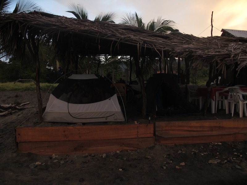 A sweet campsite at the beach under the shelter of Pablo’s restaurant. Our first night on the road, camping with Branjo