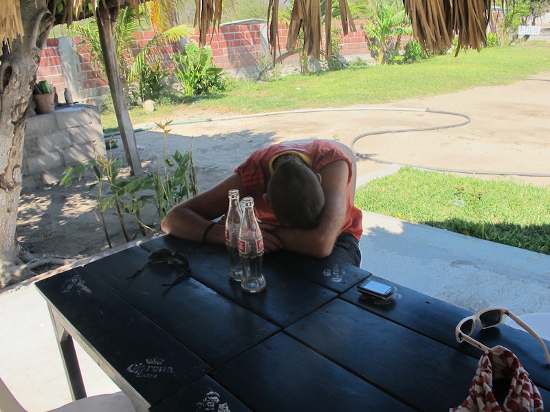 Silvano was an excellent dude and produced some friends to help restore order in the palapa so we could pitch our tent and cook our dinner sheltered from the wind. His mate Bano, left us his machete for “oversight security”.
