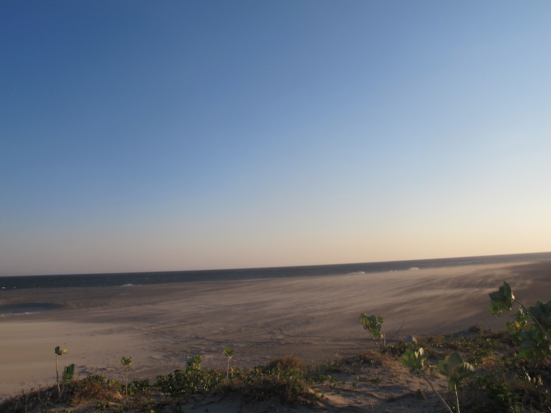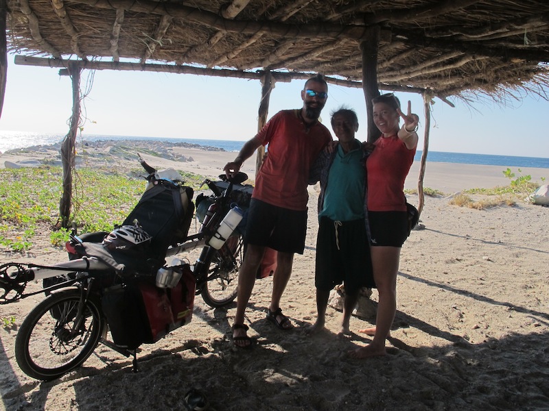 We were just looking for a road that led onto the beach, and were not at all surprised when we finally found an unpaved rocky road, 5km long, that indeed lead to the beach…..directly into the head wind. It was a laugh/cry moment, when you have used up all of your resources, both physical and emotional, but realise you just have to push that little bit further. On discovering the conditions of this final road, Bren lost it completely. He had it in his mind that we would at least find a small shop with a cold coke, alas, all that lay ahead was this long bumpy road. Falkor on a dirt road is slow going at the best of times, but add our fatigue and a killer head wind and you’ll wonder why we bother.