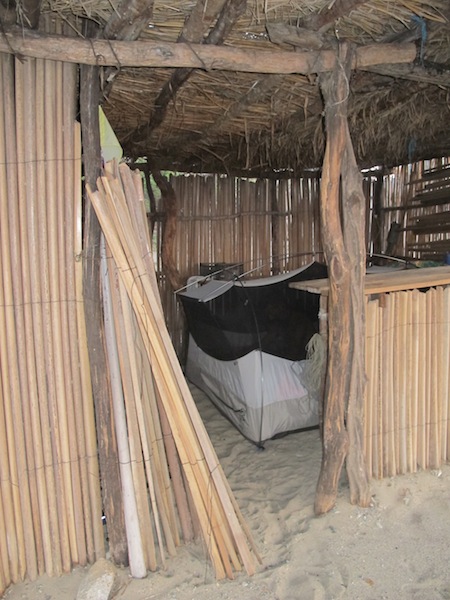 Our little tent "The Bremahal" hiding from the wind in the palapa